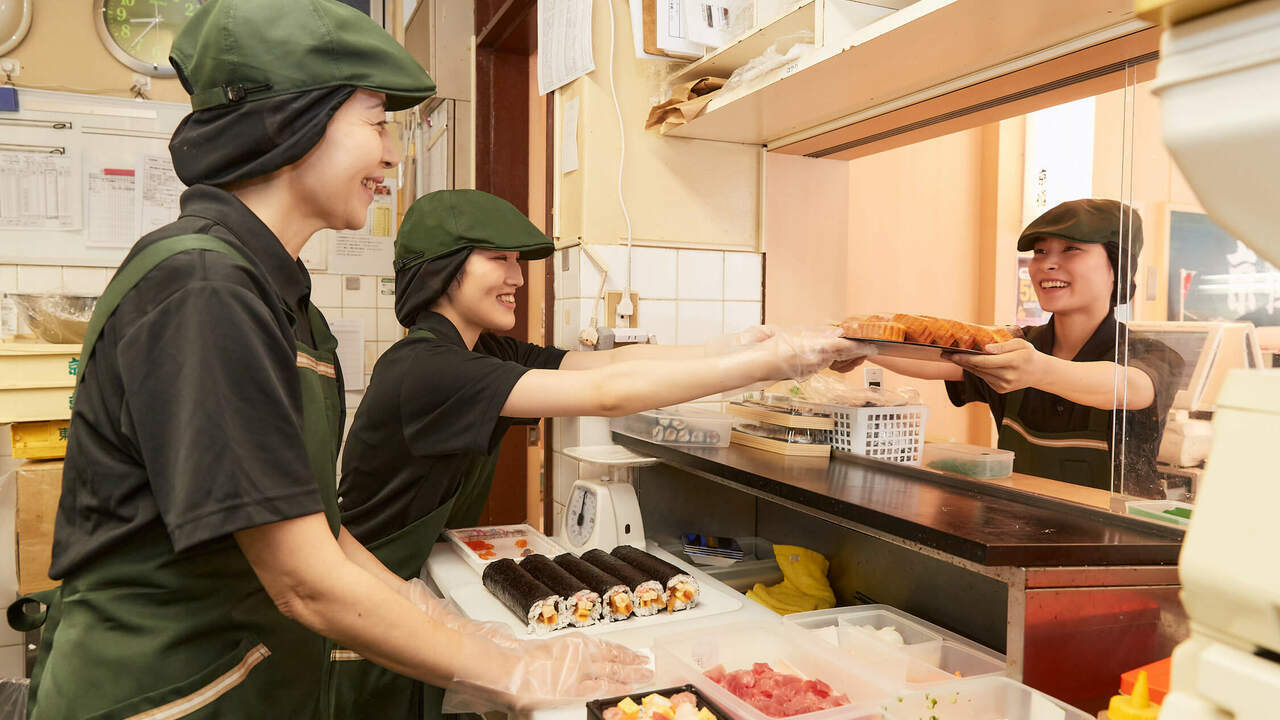 押し鮨・ちらし鮨の製造や海苔巻きのカットなどを行います。